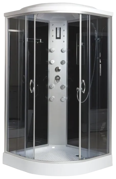 Комплектация: ручной душ, освещение, полки, вентиляция, радио, зеркало, душевая лейка, регулируемая высота ножек