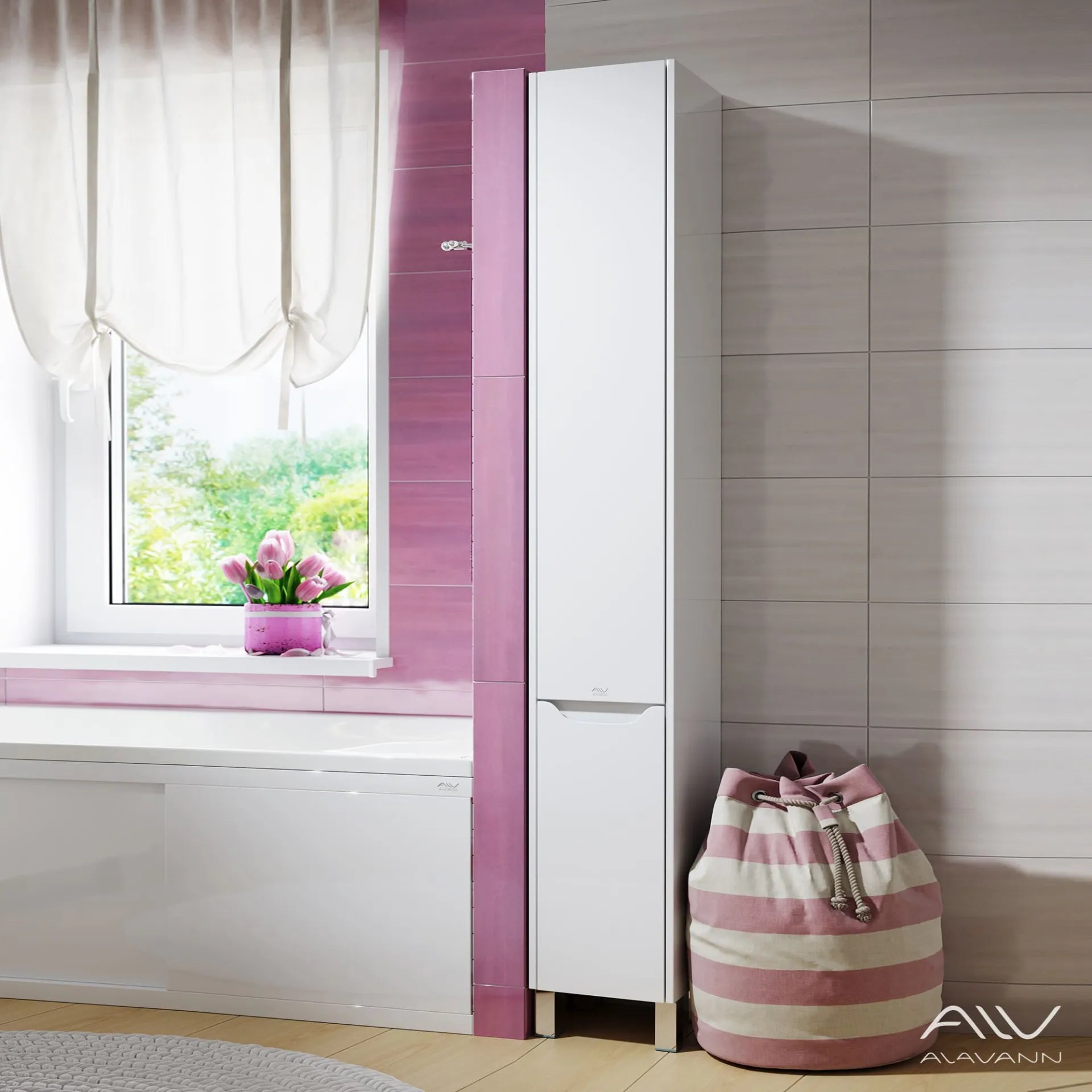 Шкаф - пенал Crystal 30 - стильное и лаконичное дополнение базовой коллекции Crystal. За двумя распашными фасадами расположены съемные полки для полотенец, халатов и флаконов с моющими средствами.