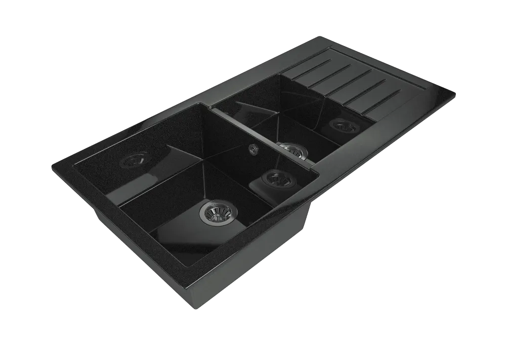 Мойка каменная Maxstone MS-29 черный металлик глянец [960 х 495 мм, Чёрный металлик, 2 чаши, МS-29.BLK.MTL.GL]