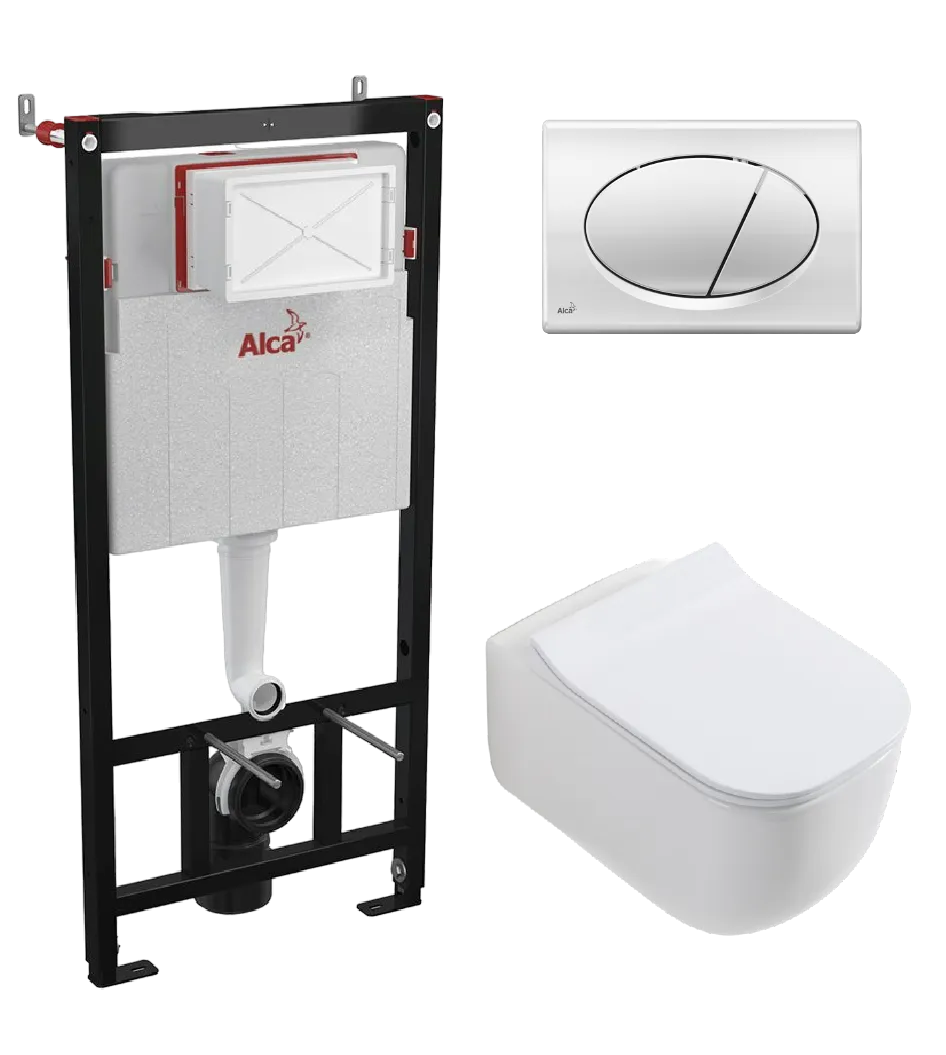 Комплект 3 в 1 (Инсталляция, Унитаз, Кнопка) AlcaPlast Set 35 [Кнопка: Хром, SET.35.INSTAL]